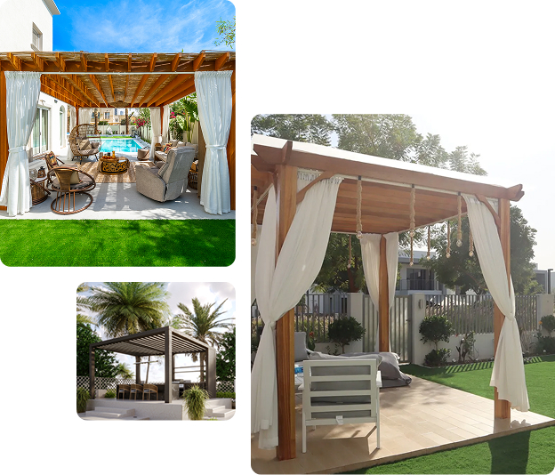 Transform your outdoor dreams into reality at the right price, just a call away. We offer complete transparency regarding pergola and gazebo installation costs in Dubai, prioritising craftsmanship and quality.