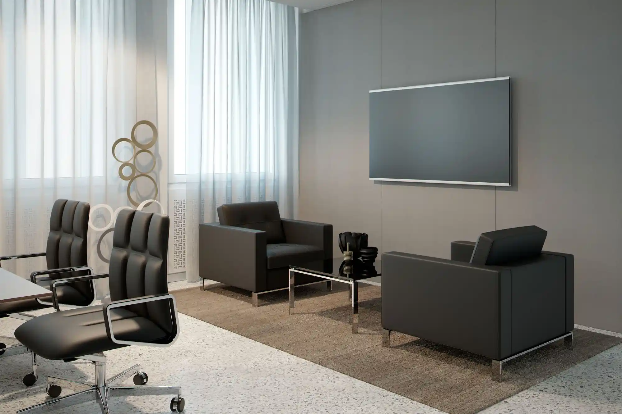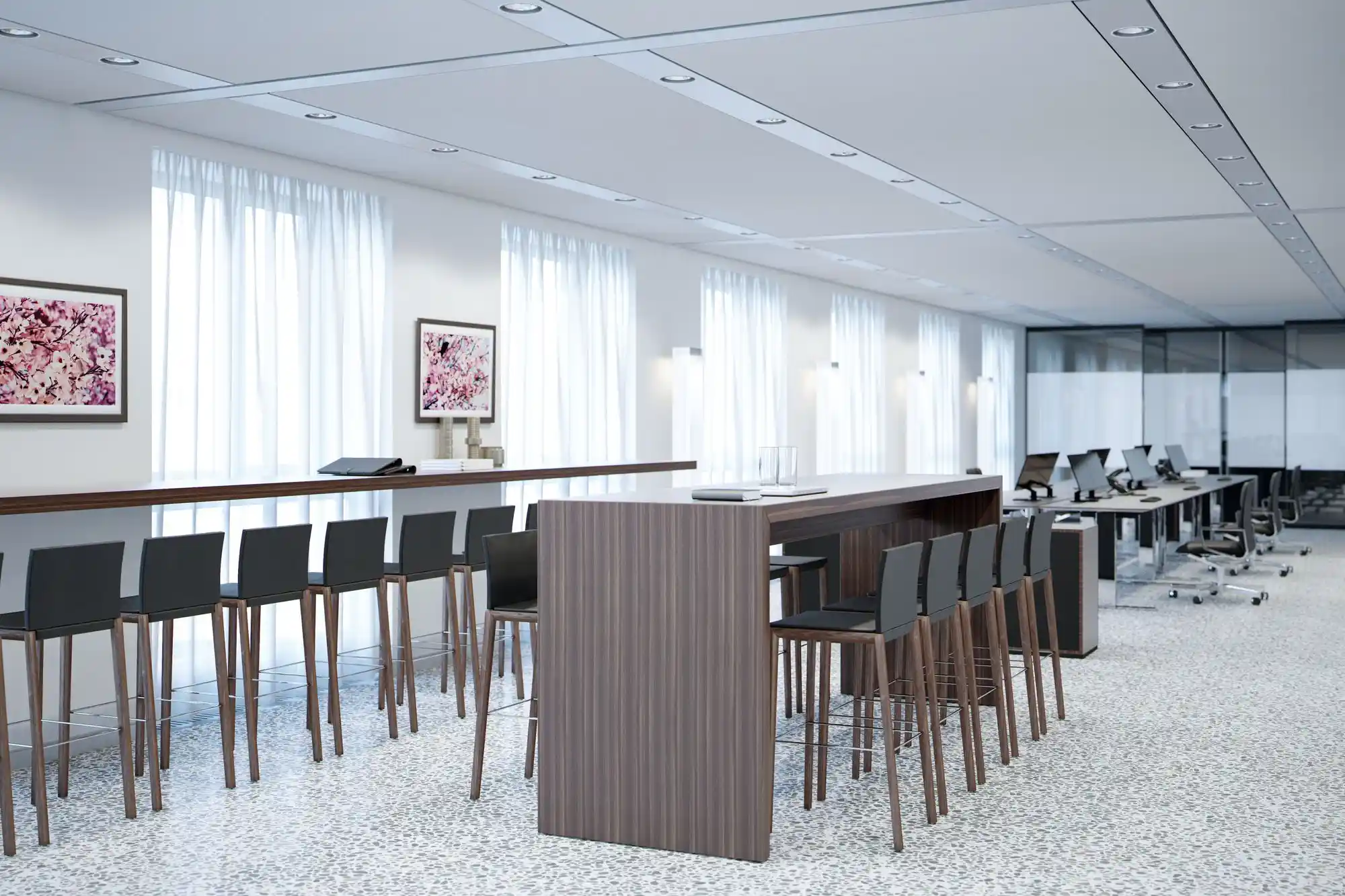 Innovative Bank Interior Combining Comfort, Style, and Technology Integration.workspace , meeting room , work cabins.