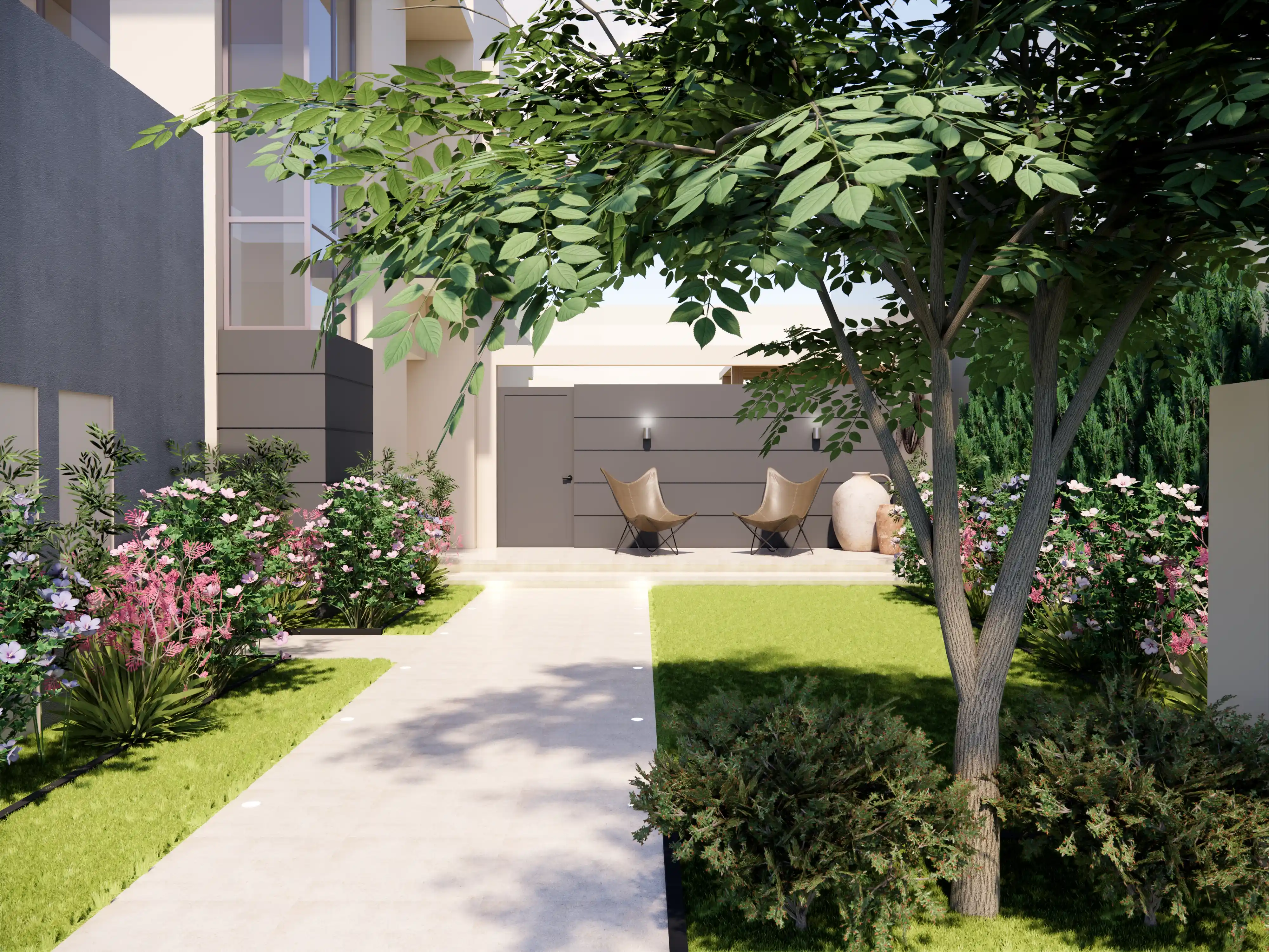 Complete Villa Interior designing and Execution with Custom Joinery, Bespoke Furniture, Premium Finishes, exterior landscaping and 2 elegent pergolas.